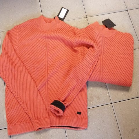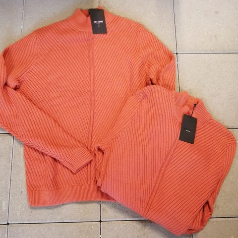 2 stk. orange Only & sons strik trøjer str. M. Med sort inder detajle. Nypris 640 kr. Ubrugt, stadig med mærke.