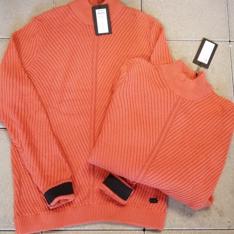 2 stk. orange Only & sons strik trøjer str. L. Med sort inder detajle. Nypris 640 kr. Ubrugt, stadig med mærke.