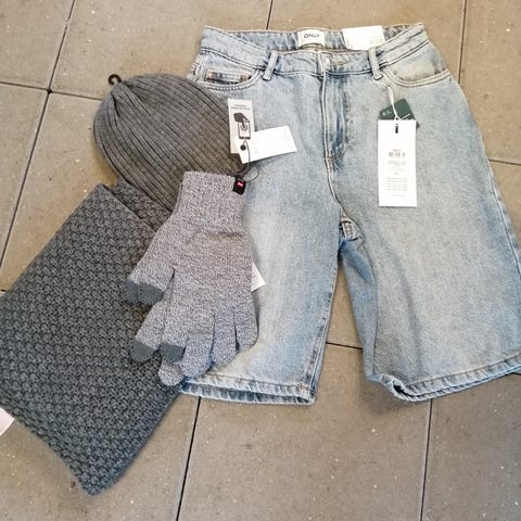 2 stk. huer - blå og grå (Jack&Jones og Only and sons), grå handsker med touch (Jack&Jones) & grå halstørklæde (Only and sons) Blå tube tørklæde (Jack&Jones). Ubrugte, stadig med mærker.