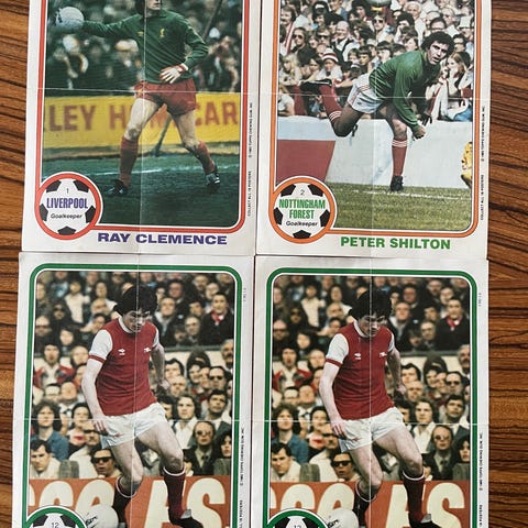 Football 84 klistermærker med logoer fra forskellige fodboldklubber samt et klistermærke med Hellas flag. Klistermærkerne er selvklæbende og indeholder billeder af klubmærker som Liverpool, Tottenham Hotspur, Arsenal, Ipswich, Aston Villa, West Ham United, Nottingham Forest og West Bromwich Albion.