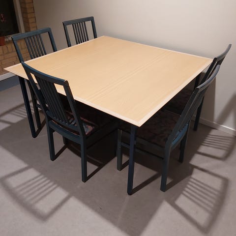 Meget fint “on a string” designer bord med 6 stole til. Fra nyt 10.000, sælges til 5000