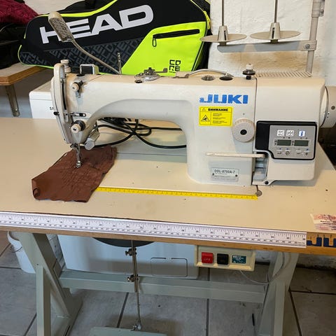 Juki MO-50N Overlock symaskine med elektrisk fodpedal. Maskinen er designet til overlock-syning, hvilket giver professionelle og holdbare sømme. Den er velegnet til forskellige typer stof og kan benyttes til både hobby- og professionelt brug.