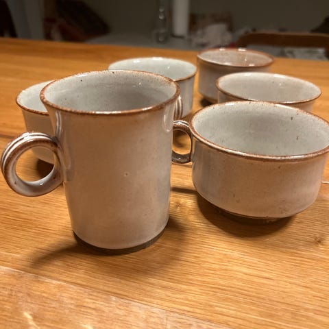 Dette er et Stogo Denmark tesæt eller kaffestel i stentøj, designet af Herluf Gottschalk-Olsen i 1960'erne.
