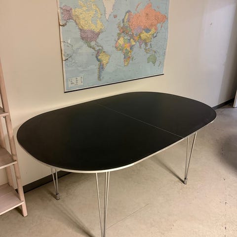 Sort mødebord med oval form og metalstel