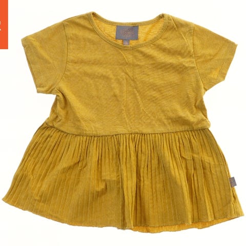 Kortærmet kjole med et brunt og hvidt ternet mønster. Kjolen har en lettere rynket krave og korte ærmer med små rynkede detaljer. Bagsiden har en lille åbning lukkes med en knap.