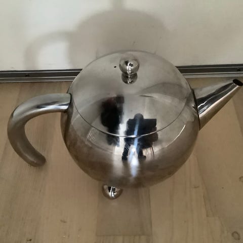 Tekande Tekanna Tekande Tek Pot i hvid porcelæn med rund form og sort håndtag. Designet til brygning og servering af te.