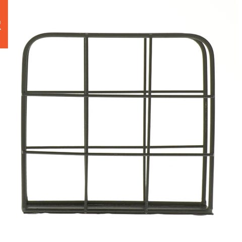 Denne vægopbevaring er fremstillet af metal og har et dekorativt blomstermønster skåret i ryggen. Den har en håndtag af træ øverst, som gør den let at hænge op eller transportere. Den er ideel til opbevaring af brever, magasiner eller små genstande. Målene er 25x24 cm.