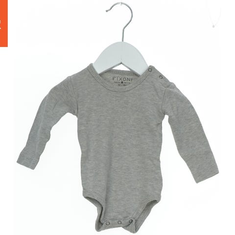 Bodystocking til babyer i hvid farve med lange ærmer og en giraffemblem på forsiden. Fremstillet af Fixoni. På bagsiden kan mærket og størrelsen ses. Knapperne på siden og forneden gør det nemt at klæde babyen af og på.