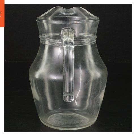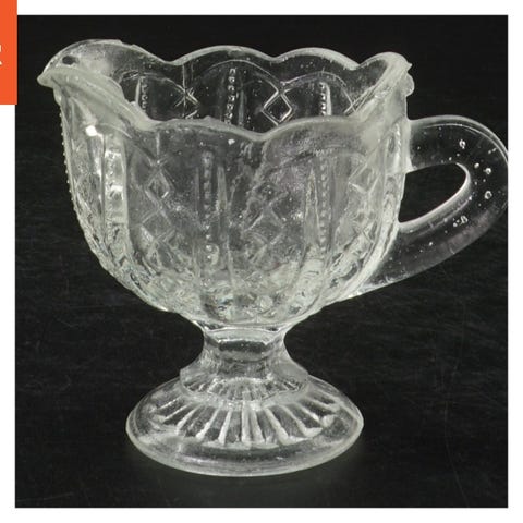 Denne er en lille glaskande med en hank og en tud, ideelt til at servere saucer eller dressinger. Kanden er lavet af gennemsigtigt glas med en grøn nuance, og har en diameter på 8 cm.