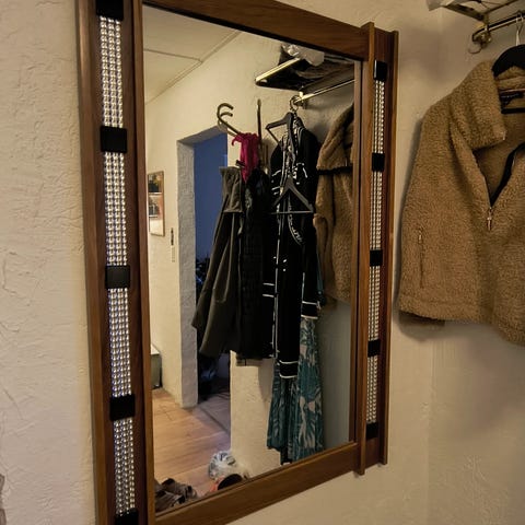 Teak Spejl, Retro, 8 kantet. I meget fin stand. 45x45 cm, kant 3,5 cm.