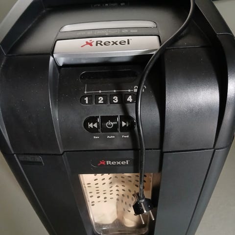 Rexel Auto+ 300X makulator med automatisk indføring. Sort farve og robust design. Velegnet til kontorbrug til sikker makulering af dokumenter.