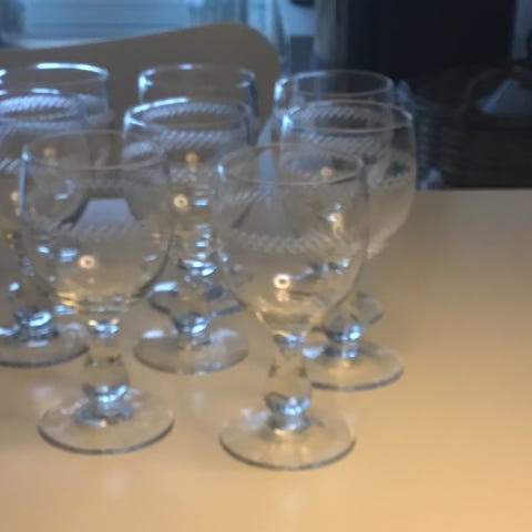 Tre svenske portvinsglas. De er mere end 100 år gamle og er fremstillet I grønt glas. De indgår i en serie med svenske lens våben. Disse tre glas er udsmykket med Skånes våben og navn. De er I perfekt stand uden skader. Højden er 12 cm og kummen har en diameter på 4,5 cm. Fodens diameter er 6 cm. Sælges kun samlet og prisen er derfor for alle tre. Står på Mols men kan gratis leveres I Aarhus og Ebeltoft eller sendes billigt på købers regning