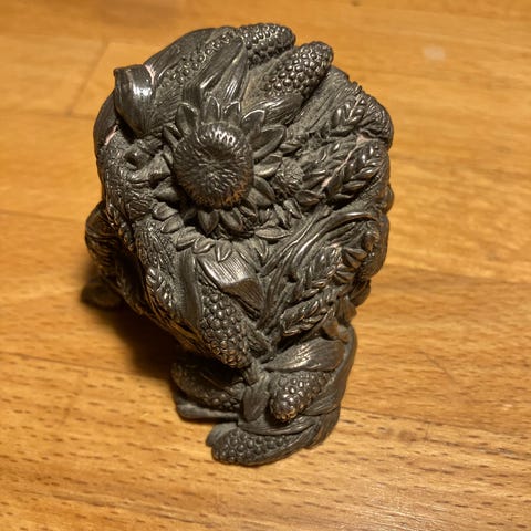 Lille sølv figur men bl.a. blomster, blade og majs.