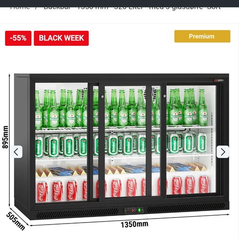 Køleskab med glasdør og LED-belysning