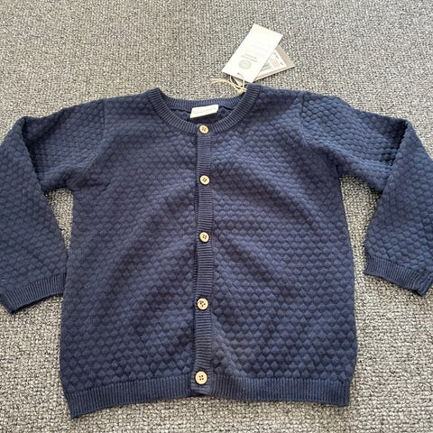 En brun cardigan til børn med knaplukning foran. Den har et mønstret strukturdesign og ribkanter ved ærmerne og taljen. Størrelsen er 122/128, hvilket typisk passer til børn i alderen omkring 7-8 år. Cardiganen er lavet af et behageligt materiale og er velegnet til både hverdag og særlige anledninger.
