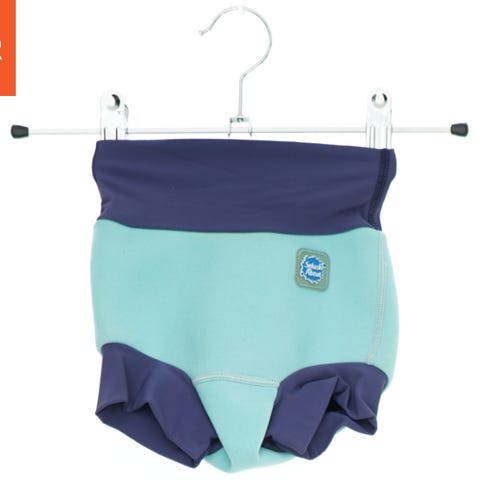 Blebadebukser til børn med lyserød baggrund og turkise detaljer fra Splash About - det foretrukne mærke i svømmehaller.