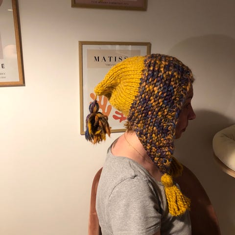 Norwegian Strikket Hue i størrelse M ca . Huen er sort med mønster og har en varm, strikket tekstur samt fleece foer . Den er designet med øreklapper og snore, hvilket giver ekstra beskyttelse mod kulde. Kan afh i kbh efter nærmere aftale.
