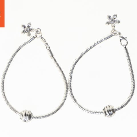 Sæt med to sølv armbånd, hver med en længde på 17,5 cm. Armbåndene har en slangeagtig kæde med en blomstret lås og en dekorativ perledetalje.( Bemærk armbåndene er nye )