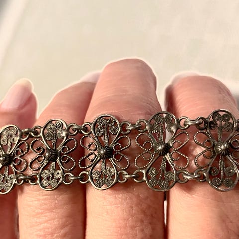 Beduin armbånd i sølv. Antik. Fra Arabien - Golfen / Oman eller Nordafrika. Smukt håndlavet smykke. Til kvinde/pige. Frugtbarhedsarmbånd. Spidserne på smykket symboliserer bryster.