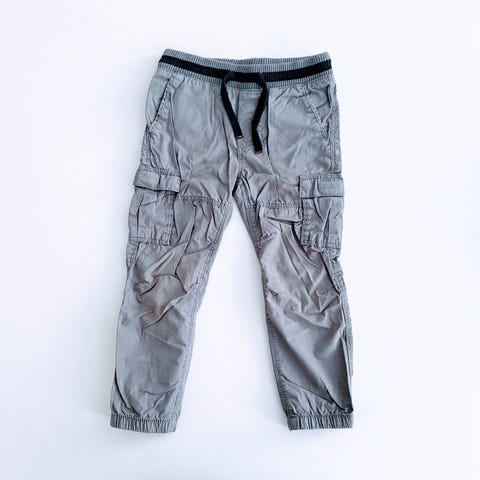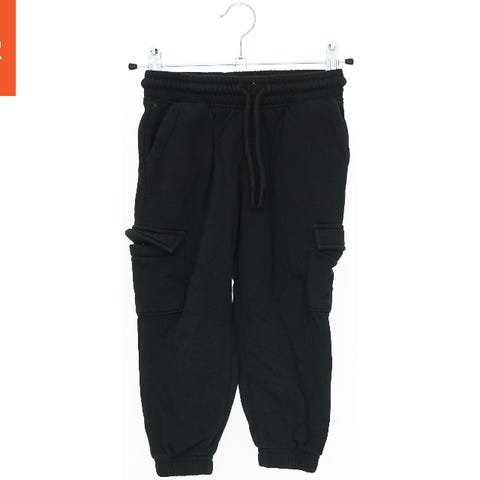 Brune cargo bukser med elastisk linning og snøre. Der er flere lommer, inklusive to store cargo lommer på siden og to baglommer med klap. Buksebenene er afsluttet med elastik for komfort.