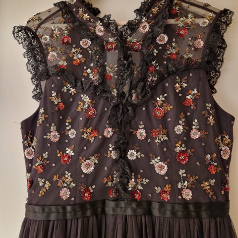 Needle & thread kjole, sort med broderi UK10