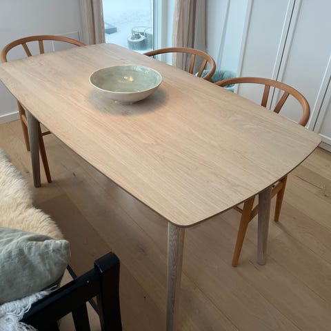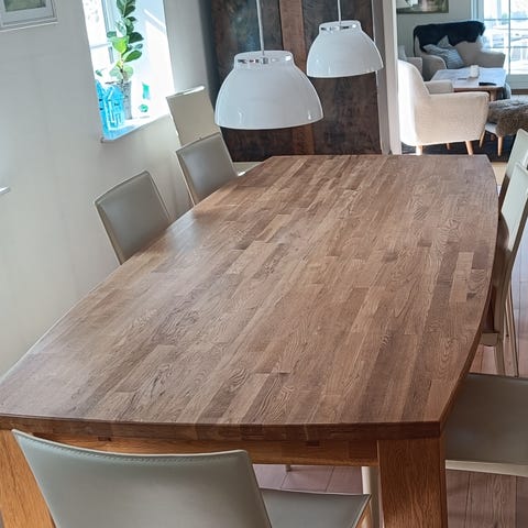 Spisebordet til hele familien Årsag til outlet: Brudt emballage. Vores Amelia spisebord i eg er et mesterværk af håndværk og design, der bringer varme og stil ind i dit hjem. Med målene 200 x 100 cm tilbyder Amelia spisebordet rigelig plads til dine arrangementer og familie måltider. Det naturlige egelook tilføjer en skønhed til enhver indretning, og den glatte overflade inviterer til hyggelige sammenkomster og livlige samtaler. Det rene og enkle design af Amelia spisebordet gør det alsidigt og let at matche med forskellige spisestuestole og dekorationer. Fremstillet af solidt egetræ sikrer dette bord holdbarhed og stabilitet, så du kan nyde det i årevis fremover. Med Amelia spisebordet i egelook bliver hvert måltid en oplevelse i elegance og komfort, og det bliver det naturlige samlingspunkt for din familie og venner. Produkter til vedligeholdelse og rengøring Guardian lakvask: Guardian Lakvask er specielt udviklet til rengøring, pleje samt beskyttelse af matte, lakerede overflader og kan anvendes på samtlige træsorter, se her.