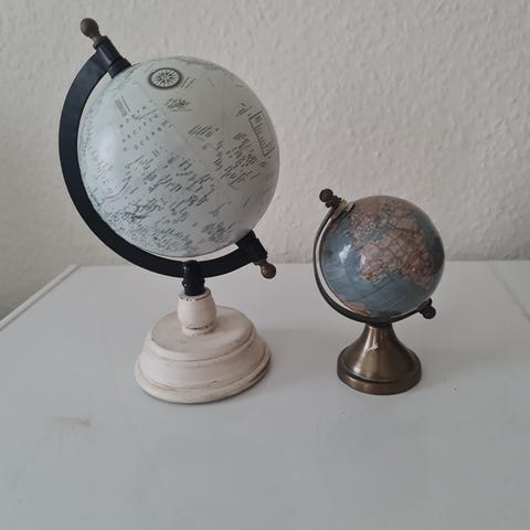 Bolig, boligindretning, boliginteriør, indretning, design, kunst, stil, interiør, pynte genstand, loppemarked, genbrugsguld, loppefund, fund, gammel globus, retro globus, vintage produkt