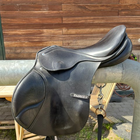 Pæn og velholdt passier Marcus Ehning springsadel. 17" jeg kender ikke bomstørrelsen, men den ligger godt på heste der bruger medium/ wide