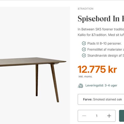 Bordet er designet af Space Copenhagen for &Tradition og fremstår i flot stand med i Røget eg med sort olie.