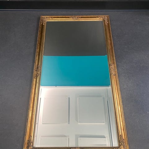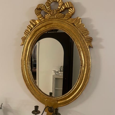 Ovalt spejl, gulds spejl, spejl, fin stand, papir på bagsiden er dog flosset, men har ingen betydning for spejlet.