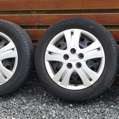 Fælge med dæk - to af dækkene bør udskiftes, deraf prisen.
