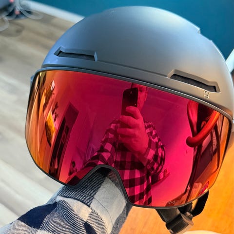 Salomon skihjelm med fotokromisk visir og Mips. Ekstra linse medfølger.