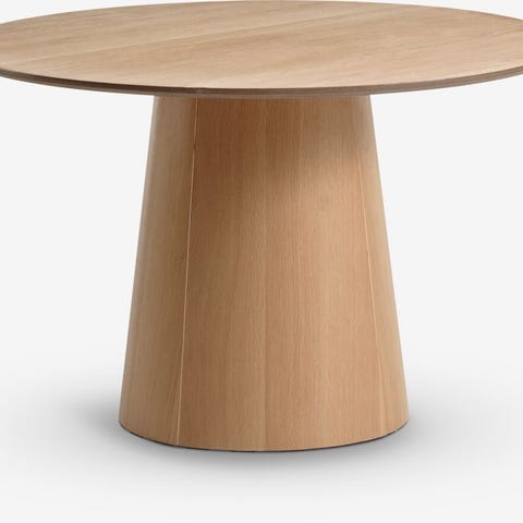 Rundt spisebord i egefiner, som er lakeret for at forlænge holdbarheden. Ø120 x H75 cm