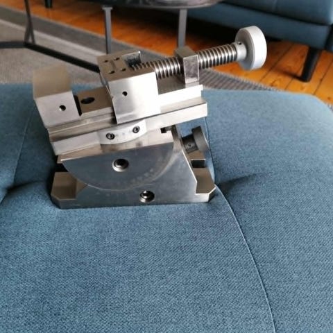 Skruestik til boring og fræsning. Kan stilles i vinkler. Særdeles god stand. Ingen boremærker og ingen mærker i kæberne. Vejer omkring 25 kg, så sender ikke. Ikke en "kinamodel". Ps. Jeg har ikke pudset den inden jeg tog billeder 😃