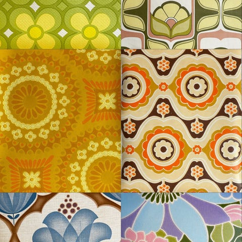 Blomstermønster i flere farver.