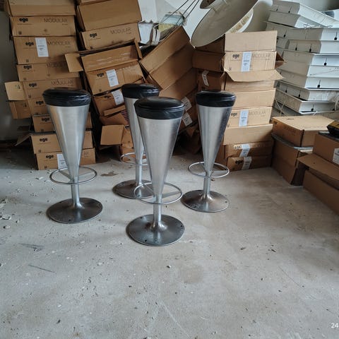 Barstol med sæde lavet af et traktor sæde i sort metal. Stolen har en industrielt inspireret stil og er velegnet til brug ved bar eller højt bord.