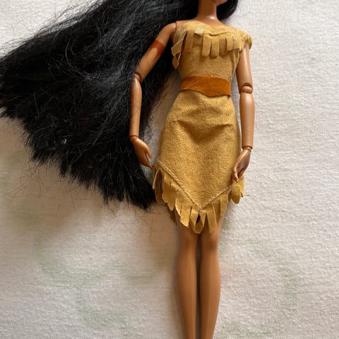Sød lille Pocahontas (5cm) figur med vaskebjørnen Meeko fra Disney filmen Pocahontas. 20kr. Ishøj.