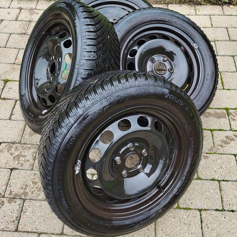 4 x vinterdæk med fælge, brugt på en eGolf