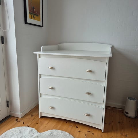 Hvid laminat med tre rummelige skuffer.