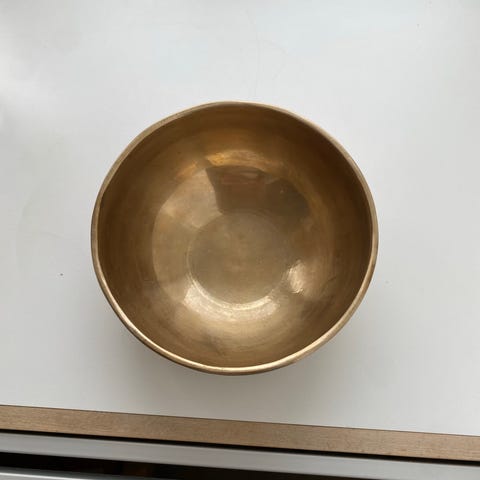 Stor Syngeskål fra Nepal. Velegnet til energetiske grounding øvelser. Syngeskålen har en meget lang sustain med en dyb grundtone og en rigdom af overtoner. Diameter 56 cm