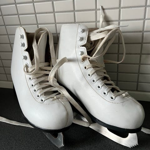 Tjekkiske kunstskøjter i str. 36/37. Størrelsen er ikke angivet i skøjterne men det indvendige mål er ca. 23cm hvilket svarer til str. 36/37. Skøjterne er brugt men i god stand.