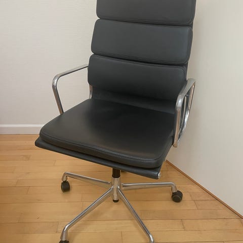 Original Vitra EA 219 Soft Pad kontorstol i sort læder, nyrenoveret og i meget flot stand, designet af Charles & Ray Eames.