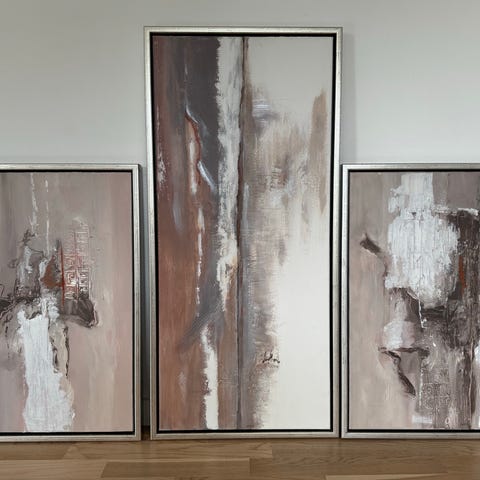 9 Malede, og tryk billeder med og uden rammer sælges samlet. Kan ikke sendes.