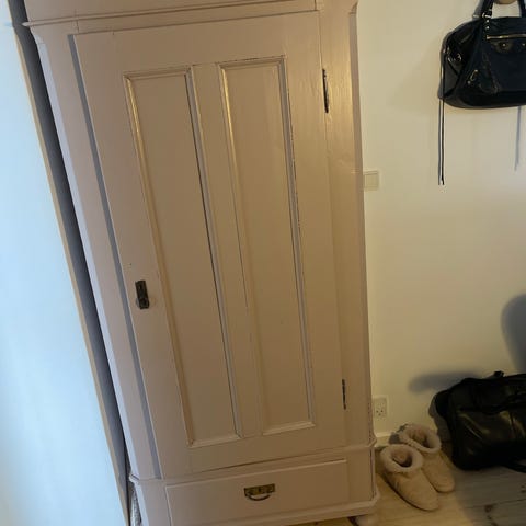 Virkelig fint gammelt karlekammerskab med bøjlestang.