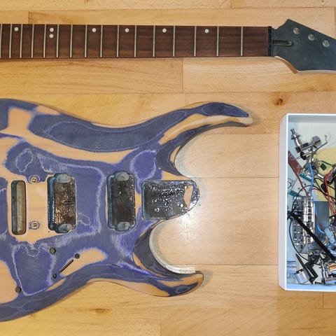 RESERVERET. Spiller fint, men der mangler dæksler på bagsiden, og vippekontakten sidder løst. Enten et lidt billigt obskurt mærke, eller måske er den faktisk custombygget(?). Oplys mig gerne, hvis du ved mere om modellen.