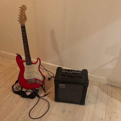 Udmærket begynder guitar eller bare en billig guitar. Kan evt. prøves kort for lige at teste funktion men ingen lange testseancer.