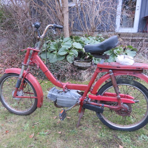 Et. stk. Monark Crescent. årg. 1970. med Sachs motor og 2 håndgear. Lade fund så har stået stille i over 20 år i en tør lade. Der er sandblæst og metalliseret og pulverlakeret på alle metal dele, så ingen rust nogle steder. Den kan starte og går fint rundt i motoren og kunne køre den den bliv sat til side for mange år siden. Ps jeg har haft den startet og køre fint i motoren. Pris forslag 8.500 Tlf. 40742594.