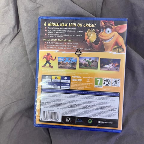 Crash Bandicoot It's About Time PS4 spil. Alder: 12+. Platform: PlayStation 4. Genre: Action/Platform. Udvikler: Toys for Bob. Udgiver: Activision. Spillet byder på nye baner og udfordringer med Crash Bandicoot og andre karakterer.