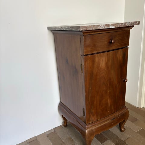 Hvidt natbord med marmorplade kan afsyres