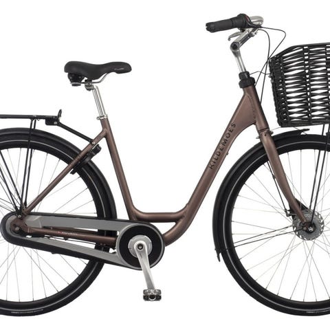 Kildemoes Hornbæk damecykel – klassikeren til hverdagens små eventyr Kildemoes Hornbæk er mere end bare en damecykel – det er en tidløs klassiker, der kombinerer komfort, funktionalitet og stil i én elegant pakke. Perfekt til den rolige tur gennem byen, en afstikker til stranden eller daglig pendling – altid med en oprejst kørestilling og høj komfort. Det er cyklen til dig, der vil glide ubesværet gennem hverdagen med stil og lethed. Sid som i sofaen – bare på cykel Med sit høje kronrør og justerbare frempind kan Hornbæk tilpasses præcis den siddestilling, du ønsker – næsten som at sidde hjemme i sofaen. Det lave indstigningsdesign gør det nemt at komme af og på, uanset påklædning og mobilitet. Ideelt til alle aldre – fra den unge konfirmand til den erfarne cyklist. Komfort og pålidelighed i topklasse Hornbæk er udstyret med 7 indvendige, stort set vedligeholdelsesfri Shimano Nexus-gear og kombineret fodbremse og håndbremse for optimal kontrol. De kraftige hjul med dobbeltbundede fælge og nippelforstærkninger samt X5 dæk med 5 mm punkteringsbeskyttelse giver dig en tryg og stabil køreoplevelse – uanset om du cykler på asfalt, grus eller stier. Praktiske detaljer, der gør livet lettere Fastmonteret frontkurv, bagagebærer med AVS-system, styrlås og en helt lukket kædekasse er blot nogle af de detaljer, der gør Hornbæk til en komplet hverdagscykel. Og med de skridsikre pedaler og fastmonterede plastskærme er du godt rustet – også i regnvejr. DU SKAL VÆLGE HORNBÆK, HVIS DU:Ønsker en klassisk damecykel med lav indstigning og høj komfortVil have en vedligeholdelsesvenlig cykel med 7 gear og solid bremseeffektLeder efter en elegant og praktisk cykel med AVS-system og fastmonteret kurv Medfølger på cyklen:• Fastmonteret kurv• Bagagebærer med AVS• Forsikringsgodkendt lås• Lukket kædekasse• Fastmonterede plastskærme• Styrlås• Skridsikre pedaler• Integreret baglygte Muligheder for tilkøb (medfølger ikke):• Forlygte (kan tilpasses efter eget ønske) Samling af din cykel: Du modtager din cykel 99% samlet. Det tager ca. ½ time at sætte pedaler på og dreje styret. Så er du køreklar. Se instruktionsvideoer her